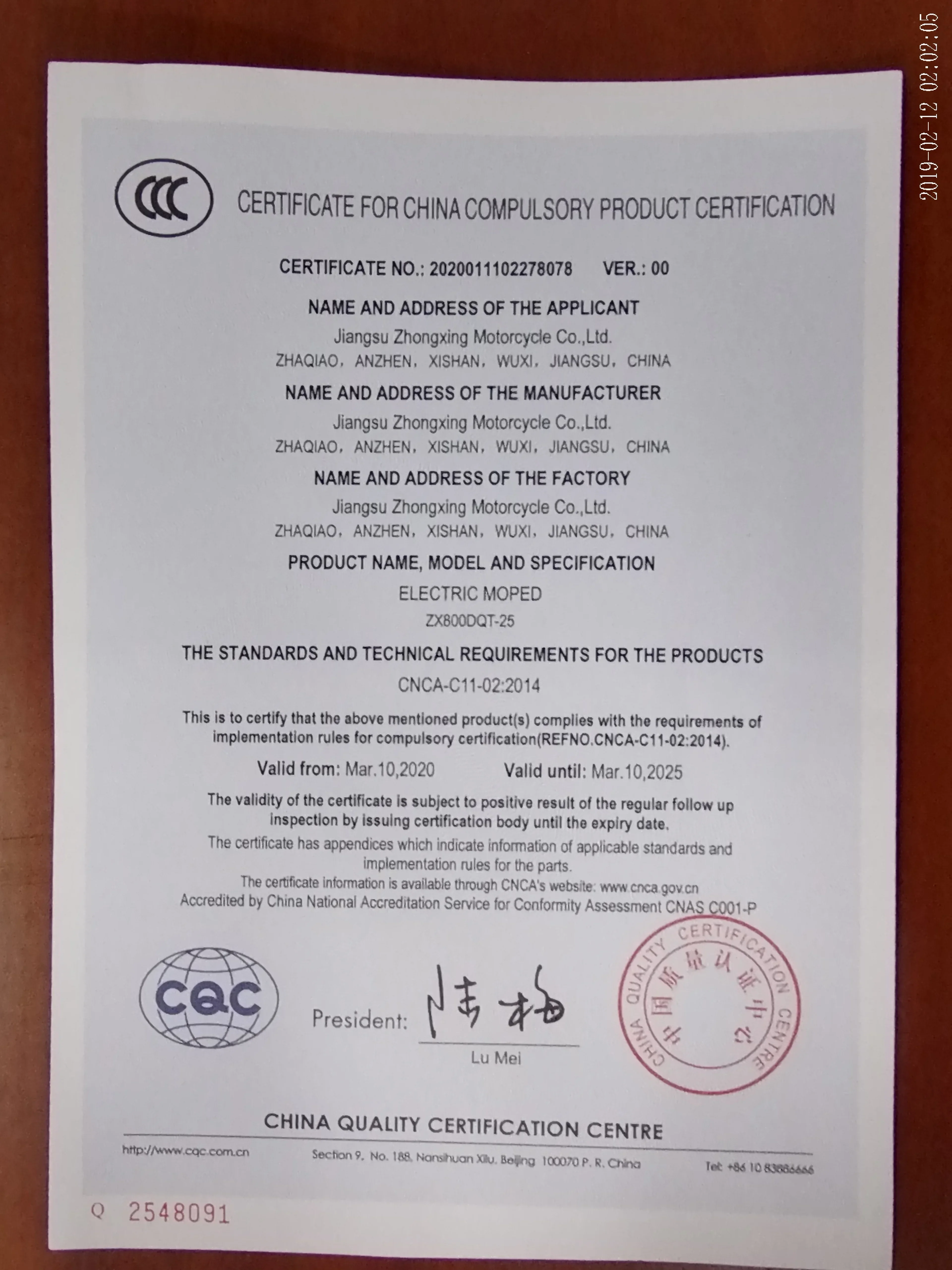 JIANGSU ZHONGXING MOTORCYCLE CO.,. founded in 2011, located in Wuxi City of Jiangsu Province in . We are dedicated in R & D, manufacturing and marketing of motorcycle and Electric Vehicle, Our company covers an area of more than 2