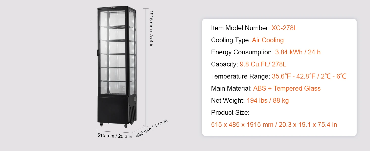 Easy Mobility: Equipped with four swivel wheels, the display case is highly mobile and flexible. You can easily move and position the refrigerator as needed.