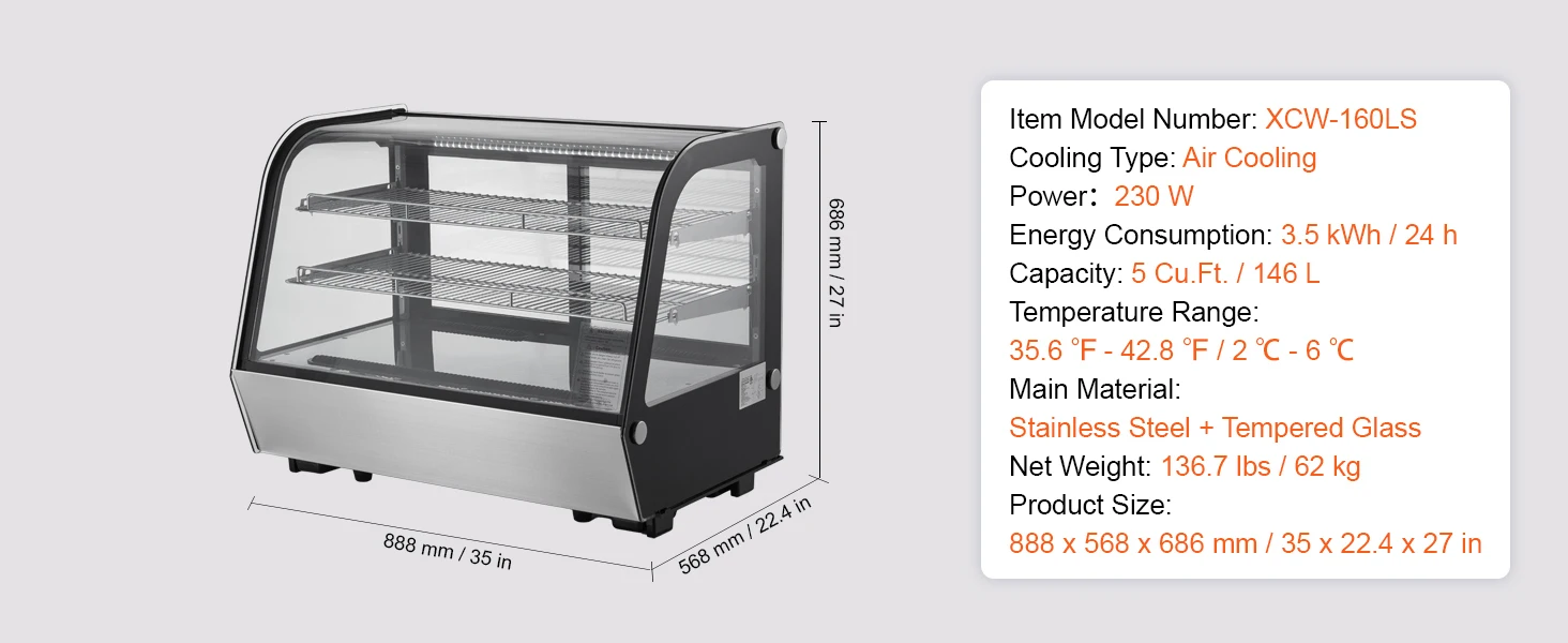 This display case is perfect for various commercial places such as bakeries, dessert shops, beverage stores, and more.